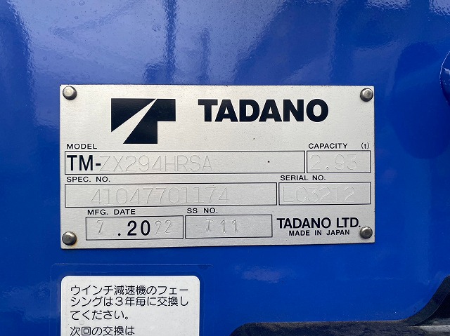 | 最大積載量(kg) | 3400kg | 上物 | (株)タダノ |
